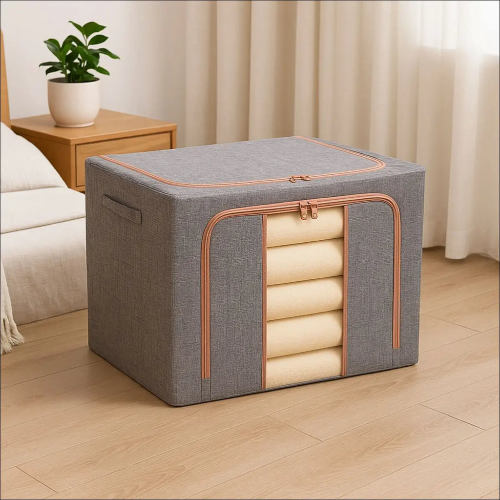 Organize sua casa com elegância e eficiência com a Caixa de Armazenamento Dobrável 66L. Ideal para roupas, brinquedos, edredons e muito mais, ela combina design sofisticado, alta resistência estrutural e praticidade no dia a dia.